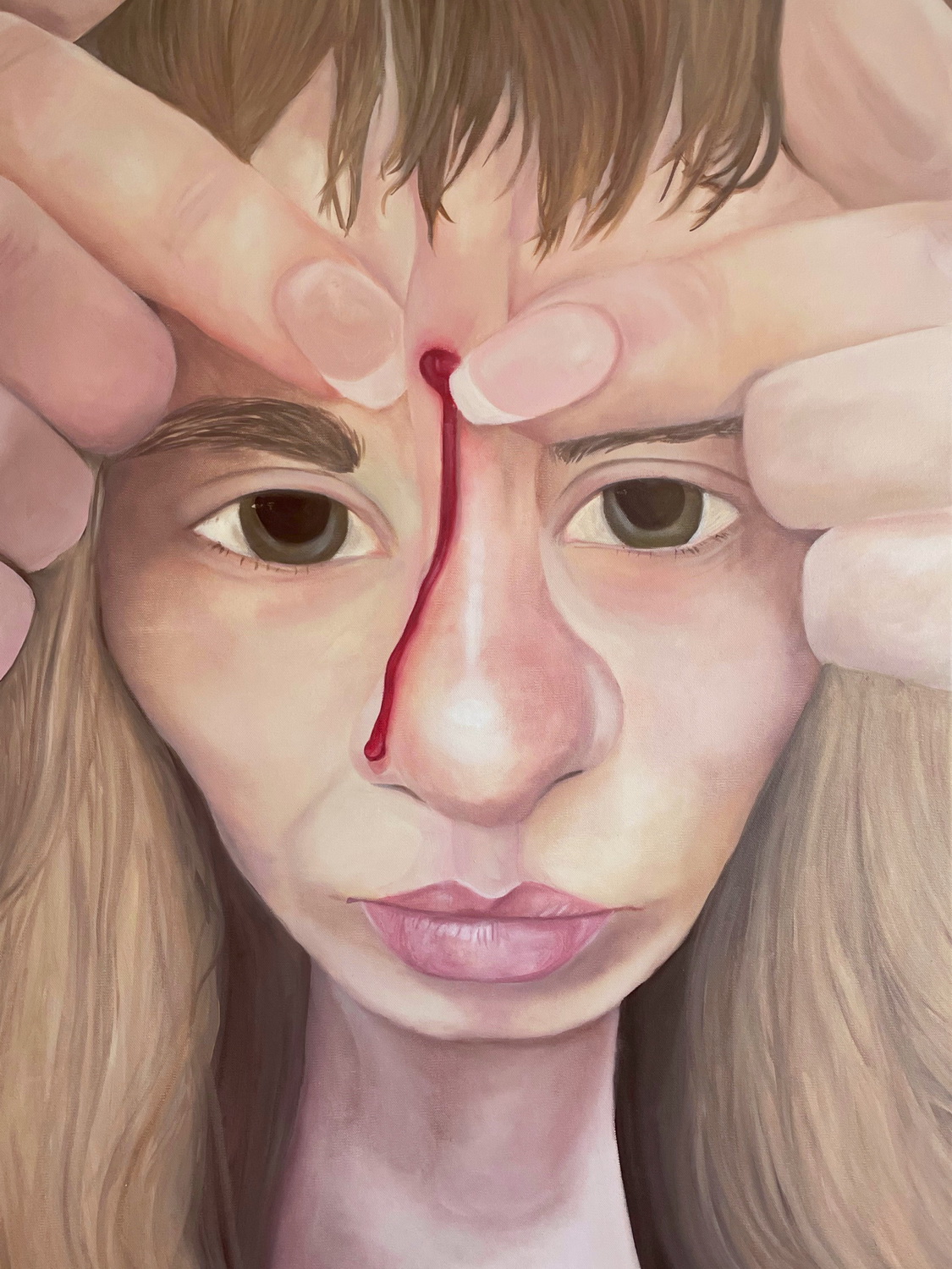 ALEKSANDRA HURAS Sypanie soli na skórę, olej na płótnie, 90 x 90 cm, 2023 Akademia Sztuk Pięknych w Katowicach |