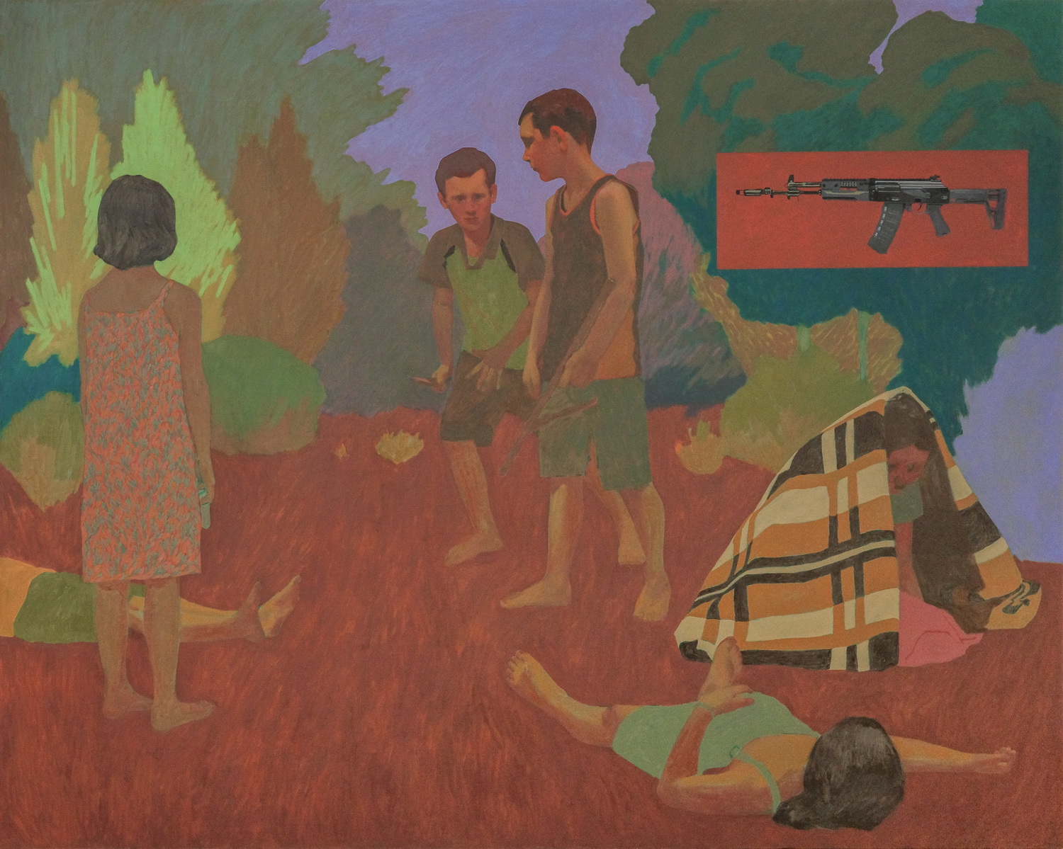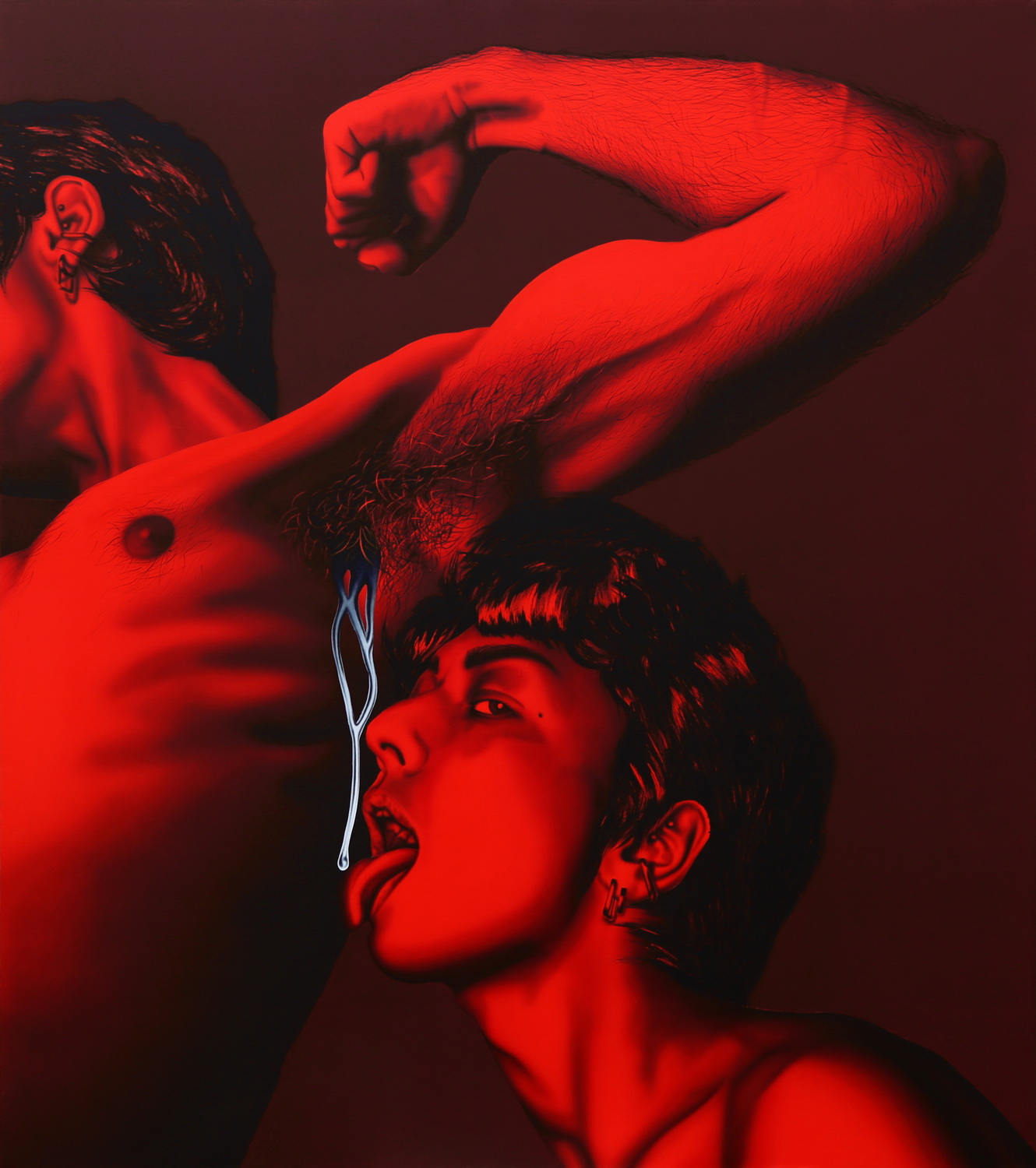 EMIL BUCKI Walka o ostatnią kroplę męskości, akryl na płótnie, 170 x 150 cm, 2025 Akademii Sztuk Pięknych w Krakowie |